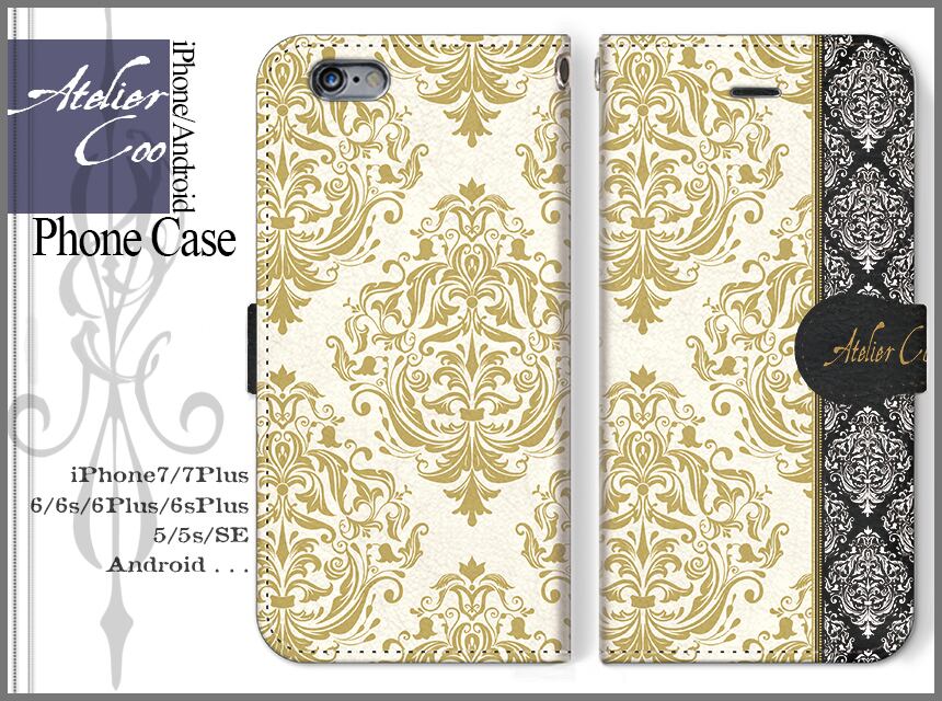 エレガントでおしゃれなダマスク柄の手帳型スマホケースです。